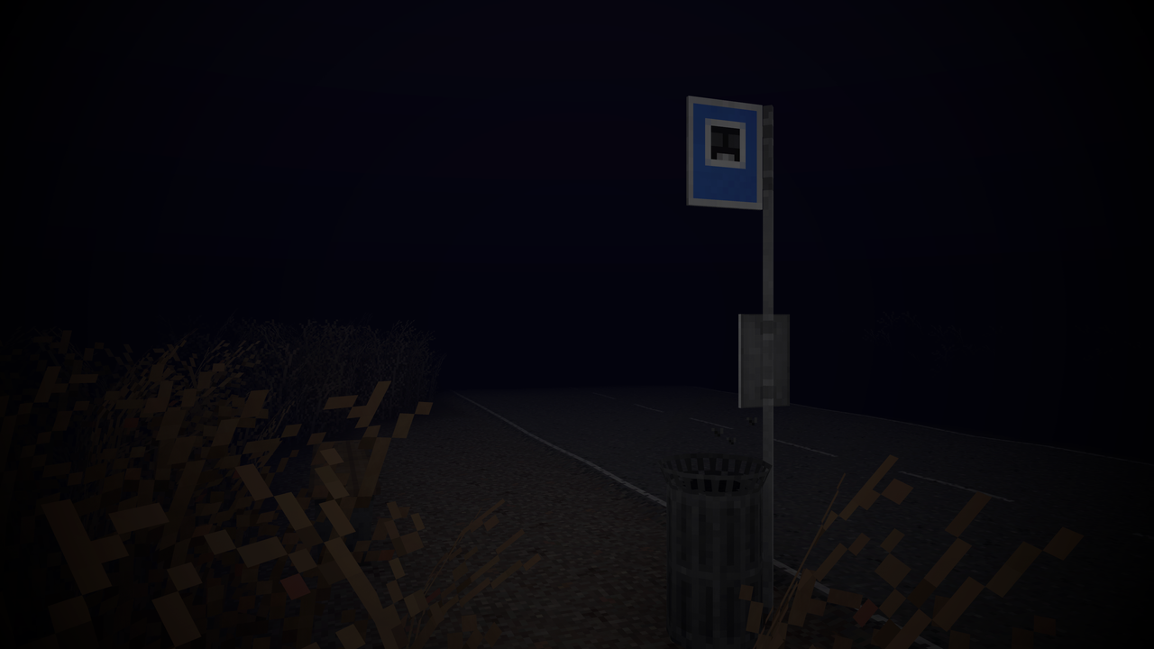The player is by oneself at a dark bus stop when Last Bus Home begins. There is only a sign, a bench, and a garbage can in the dimly lit area. There are trees all around, and it is very dark at both ends of the road. The low-poly graphics, the unsettling silence, and the oppressive gloom make the location unsettling.
