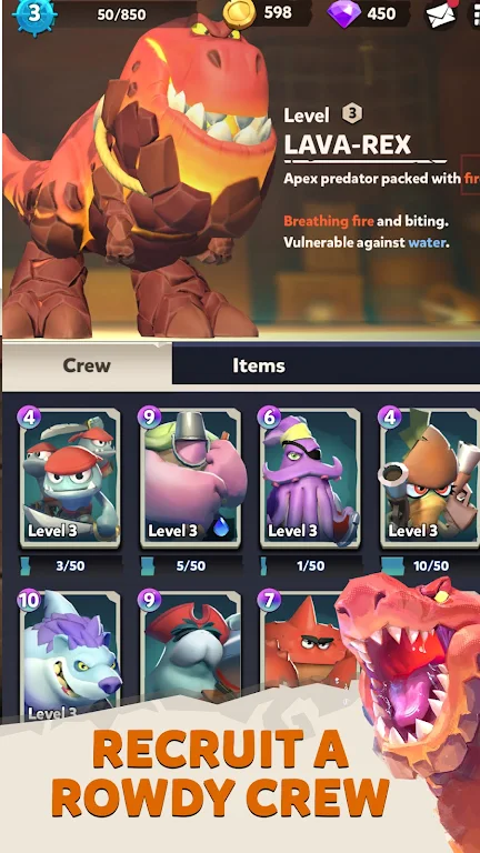 Invest in heavy troops like the massive Lava Rex or mobilize troops like the muscular Boxer Crab. Swarm others with Pistol Fish, Raptors, and other creatures. Find higher-tier cards to assemble a formidable force.